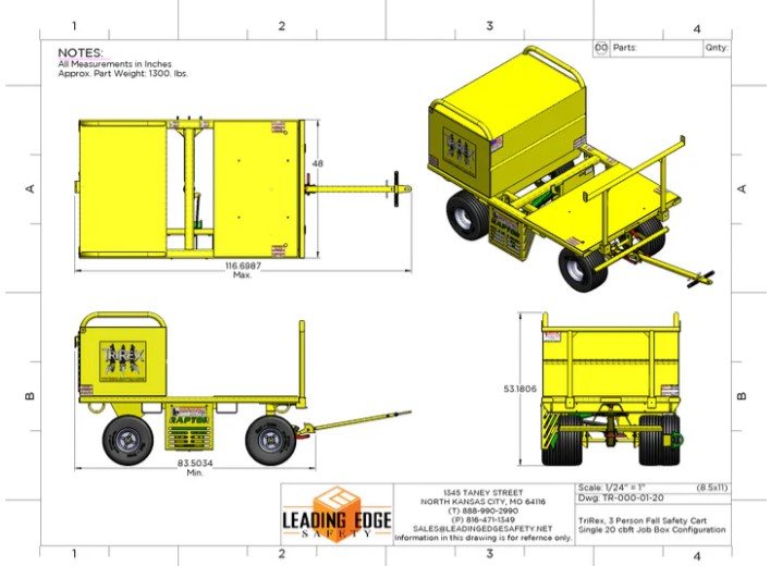 TriRex Mobile Fall Protection Cart w/ 20 cu ft single job tool box.